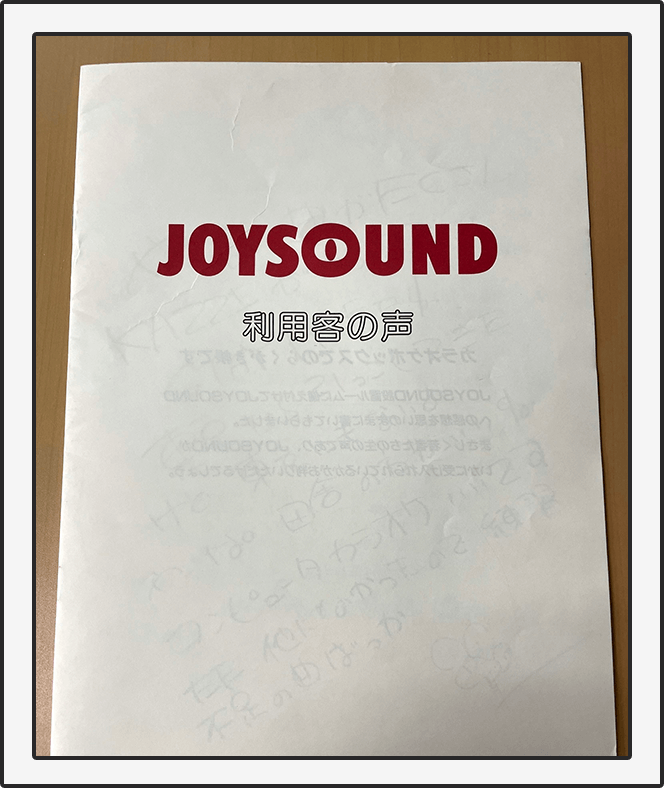 (カラオケルームに置かれたノートより抜粋)
